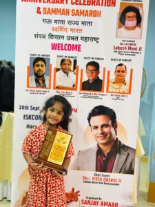उन्हें मिले खिताब भी कम गौरवशाली नहीं – भारत की जीनियस, जीके मास्टर, आईक्यू मास्टर, महाराष्ट्र की बेटी, भारत की गौरव बेटी, सबसे कम उम्र की इन्फ्लुएंसर, सबसे कम उम्र की कंटेंट क्रिएटर, असाधारण प्रतिभाशाली बालिका, जीके प्रॉडिजी और न जाने कितने।चार साल की यह बच्ची जब मंच पर खड़ी होकर देश-विदेश के झंडे, राजधानियाँ, करेंसी, महापुरुषों के नाम, ग्रह-नक्षत्र, धार्मिक ग्रंथों की बातें, भजन-कीर्तन सब कुछ एक साथ याद करके सुनाती है तो पूरा हॉल तालियों से गूँज उठता है।