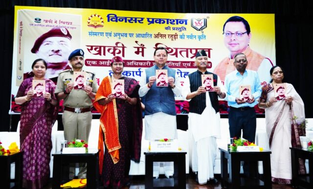 मुख्यमंत्री धामी ने किया पुस्तक ‘‘खाकी में स्थितप्रज्ञ’’ का विमोचन।
