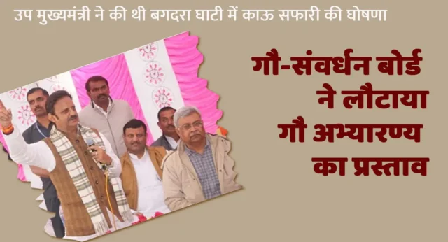 चित्रकूट धाम के निकट स्थित बगदरा घाटी में उप मुख्यमंत्री राजेंद्र शुक्ला द्वारा प्रस्तावित गौ अभयारण्य का प्रस्ताव गौ-संवर्धन बोर्ड ने बैरंग लौटा दिया है। 2 मई को प्रस्ताव वापस करते हुए प्रबंध संचालक मप्र गौ संवर्धन बोर्ड ने लिखा है कि मझगवां विकासखंड के बगदरा घाटी क्षेत्र में वनों एवं वन्य प्राणियों के संरक्षण तथा संवर्धन के लिए फेंसिंग एवं भू-जल संरक्षण कार्य का परियोजना प्रतिवेदन गौ-संवर्धन बोर्ड को प्राप्त हुआ है। मप्र गौ संर्वधन बोर्ड गौवंश के संरक्षण एवं संवर्धन को के मकसद से निराश्रित गौवंश के व्यवस्थापन के लिए अनुदान प्रदान करता है। यह प्रस्ताव वन तथा वन्य प्राणियों के संरक्षण व संवर्धन से संबंधित है। लिहाजा, यह प्रस्ताव मूलत: वापस कर संबंधित कार्यपालिक विभाग को प्रेषित किया जाए।