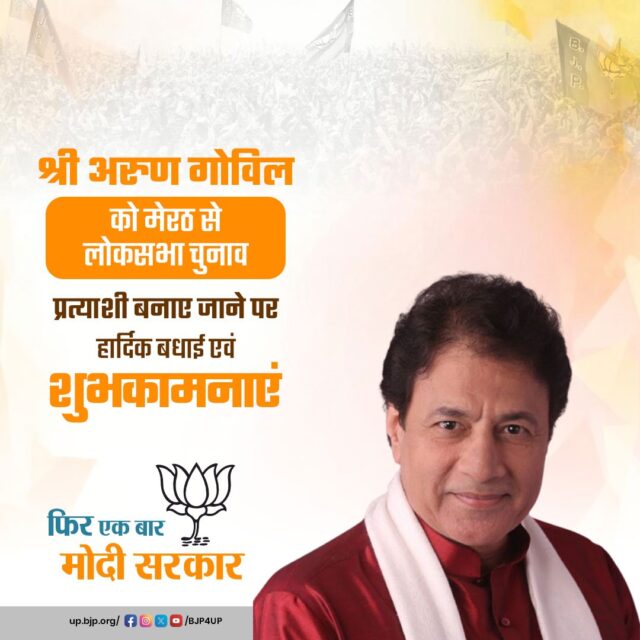 श्री अरुण गोविल को मेरठ से लोकसभा चुनाव प्रत्याशी बनाए जाने पर हार्दिक बधाई एवं शुभकामनाएं।#PhirEkBaarModiSarkar pic.twitter.com/10vtzwscog