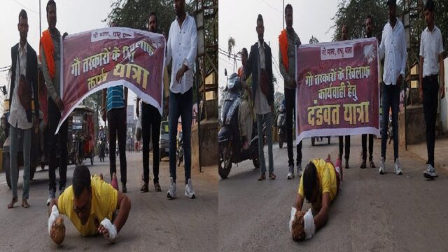 गौ रक्षक ओमेश बिसेन ने निकाली दंडवत यात्रा, तस्करों के खिलाफ IG से करेंगे करवाई की मांग