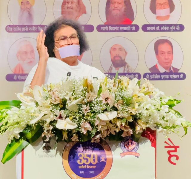 नई दिल्ली, 20 सितंबर 2025 : अहिंसा विश्व भारती के संस्थापक जैन आचार्य लोकेशजी, अकाल तख्त के प्रमुख जत्थेदार ज्ञानी रघुबीर सिंह जी, परमार्थ निकेतन के अध्यक्ष स्वामी चिदानन्द सरस्वतीजी, दिल्ली के पर्यावरण मंत्री श्री मंजिन्दर सिंह सिरसा, सांस्कृतिक मंत्री श्री कपिल मिश्रा, दिल्ली सिख गुरुद्वारा प्रबंधन कमेटी के अध्यक्ष श्री हरमीत सिंह कालका, सहित विभिन्न धर्मों के गुरुओं ने श्री गुरु तेग बहादुर साहिब जी, गुरु सिख भाई मति दास जी, भाई दियाला जी के 350 वें शहीदी दिवस को समर्पित सर्वधर्म सम्मेलन को संबोधित किया |