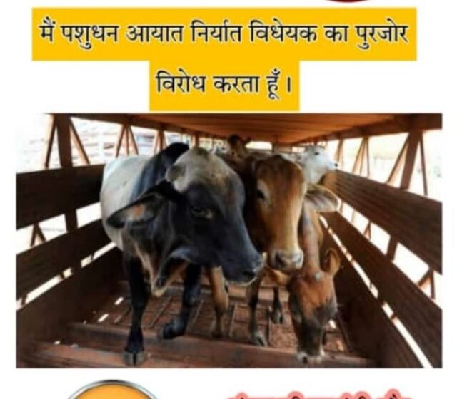 मुम्बई – महाराष्ट्र , पशुपालन विभाग द्वारा जिंदा पशुओं को भारत से निर्यात करने के लिए विधेयक पर पुरे देश में विरोध के स्वर तेज हो रहे है। मोदी सरकार के इस विधेयक पर कई सवाल खड़े हो रहे है। भारत में पशु प्रेमियों की बहुत संख्या है। अहिँसा को मानने वाला देश है , जहा यदि कानूनन जिन्दा पशुओ के निर्यात का कानून यदि बनता है तो बड़ा ही शर्मनाक होगा।