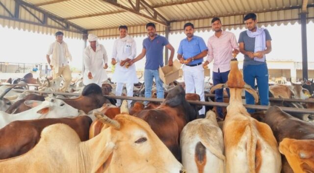 महाराज जी ने गोवंशों को गुड़ भी खिलाया। pic.twitter.com/CtfnnZURqK