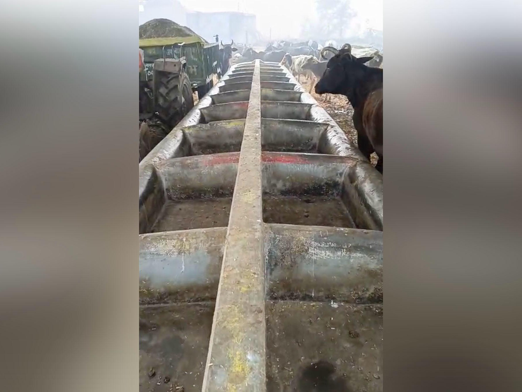 वीडियो में गौशाला के भीतर लंबी सीमेंटेड नांदें खाली दिखाई देती हैं, जबकि दर्जनों गाय-भैंसें उनके पास खड़ी हैं। इससे संकेत मिलता है कि उन्हें समय पर चारा नहीं मिल रहा है। परिसर में जगह-जगह गोबर और गंदगी जमा है, जो साफ-सफाई में गंभीर लापरवाही को दर्शाता है।